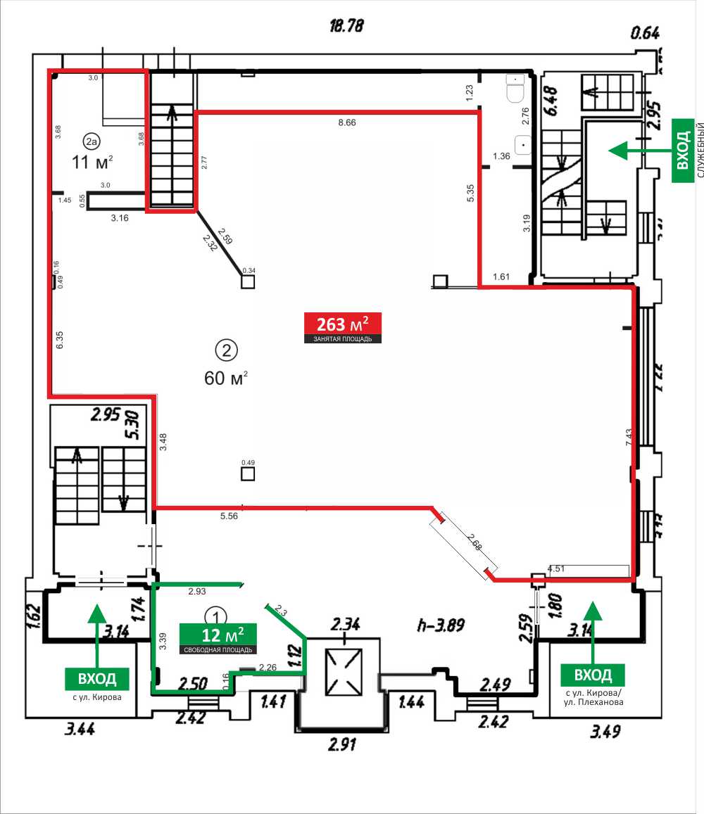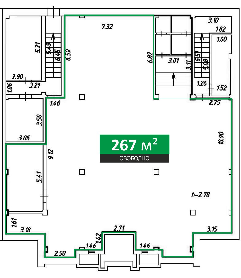 Цоколь: 267,4 кв.м. (отдельный вход)